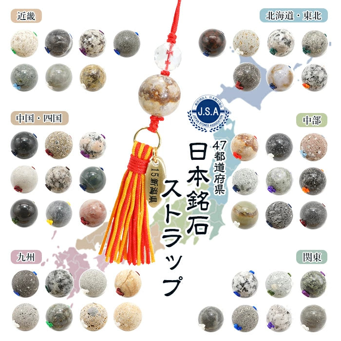A combination of Japanese stone beads (12mm) and colored tassels of each prefecture's flag.