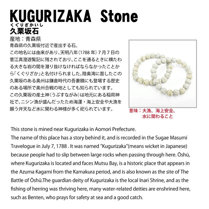 This stone is mined near Kugorizaka in Aomori Prefecture.